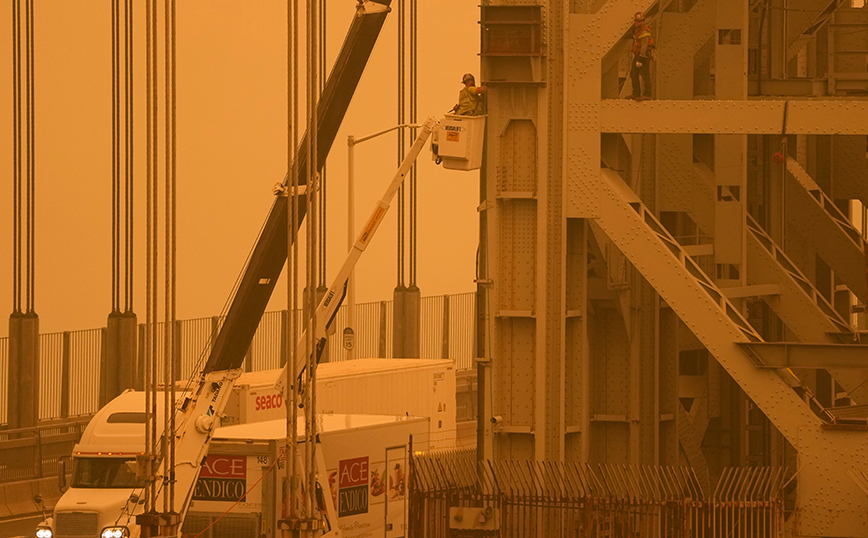 Εντυπωσιακές εικόνες της Νέας Υόρκης μέσα σε ένα πορτοκαλί σύννεφο κυκλοφόρησαν χθες, αν και ο ουρανός είναι πιο καθαρός σήμερα.
