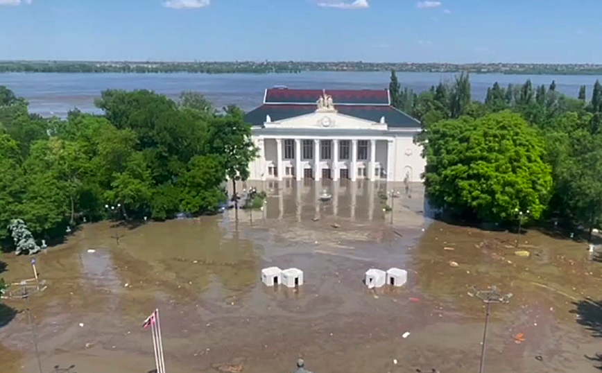 Η καταστροφή του υδροηλεκτρικού φράγματος, για την οποία η Μόσχα και το Κίεβο ρίχνουν την ευθύνη η μια πλευρά στην άλλη, είχε ως αποτέλεσμα να πλημμυρίσουν πόλεις και χωριά που βρίσκονται και στις δύο όχθες του ποταμού Δνείπερου, μεταξύ των οποίων συνοικίες της Χερσώνας, πρωτεύουσας της περιφέρειας, και ανάγκασε χιλιάδες ανθρώπους να εγκαταλείψουν τις εστίες τους.