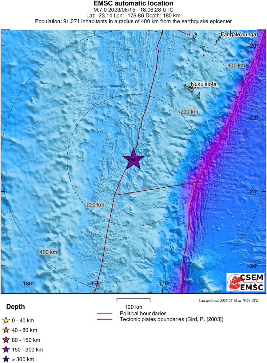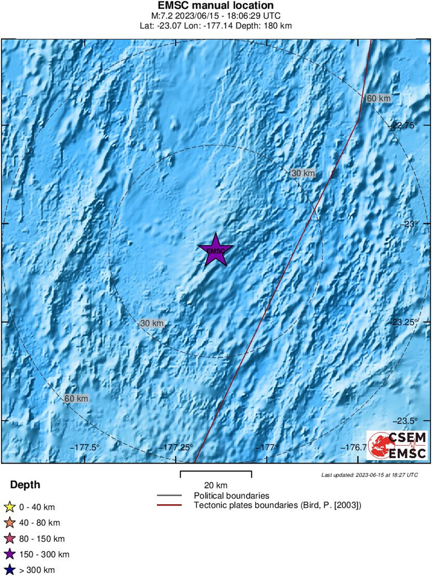 Μια ισχυρή σεισμική δόνηση μεγέθους 7 βαθμών σημειώθηκε σήμερα στα νότια των Νησιών Φίτζι, ανακοίνωσε ο Ευρωμεσογειακό Σεισμολογικό Κέντρο (EMSC).