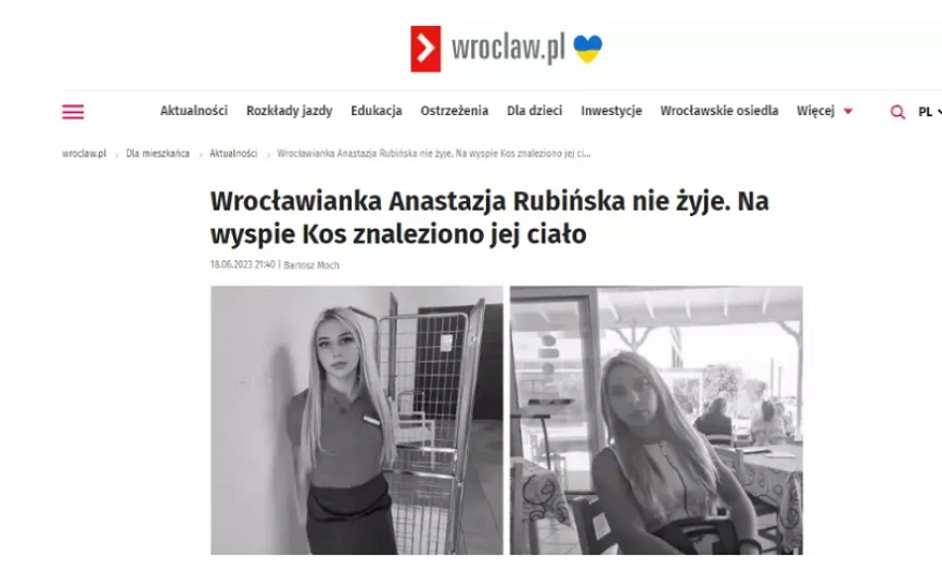 Επίσης, το wroclaw.pl σημειώνει ότι «η Αναστάζια Ρουμπίνσκα από το Βρότσλαβ είναι νεκρή. Η σορός της βρέθηκε στο νησί της Κω».