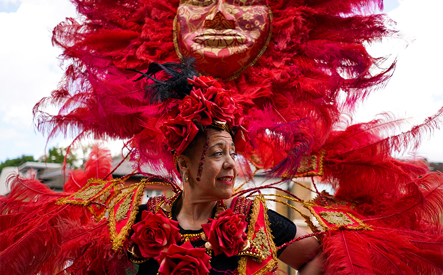 Από την άλλη πλευρά, άνθρωποι στο Λονδίνο ετοιμάζουν κοστούμια για την πομπή της Ημέρας του Windrush. Η άφιξη του Empire Windrush στις 22 Ιουνίου 1948 έγινε σύμβολο της μεταπολεμικής μετανάστευσης που μεταμόρφωσε το Ηνωμένο Βασίλειο και τον πολιτισμό του. Ο όρος «γενιά Windrush» έχει καταλήξει να αντιπροσωπεύει εκατοντάδες χιλιάδες ανθρώπους που έφτασαν στο Ηνωμένο Βασίλειο μεταξύ των τελών της δεκαετίας του 1940 και των αρχών της δεκαετίας του 1970, ιδίως εκείνους που προέρχονταν από τις πρώην βρετανικές αποικίες στην Καραϊβική.