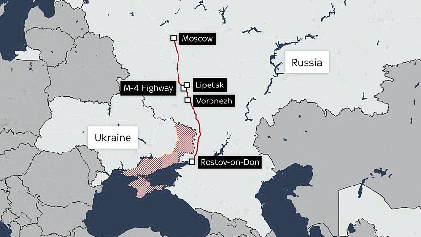 O αυτοκινητόδρομοw M-4 συνδέει την πρωτεύουσα Μόσχα με περιοχές της νότιας Ρωσίας οι οποίες γειτονεύουν με την Ουκρανία.