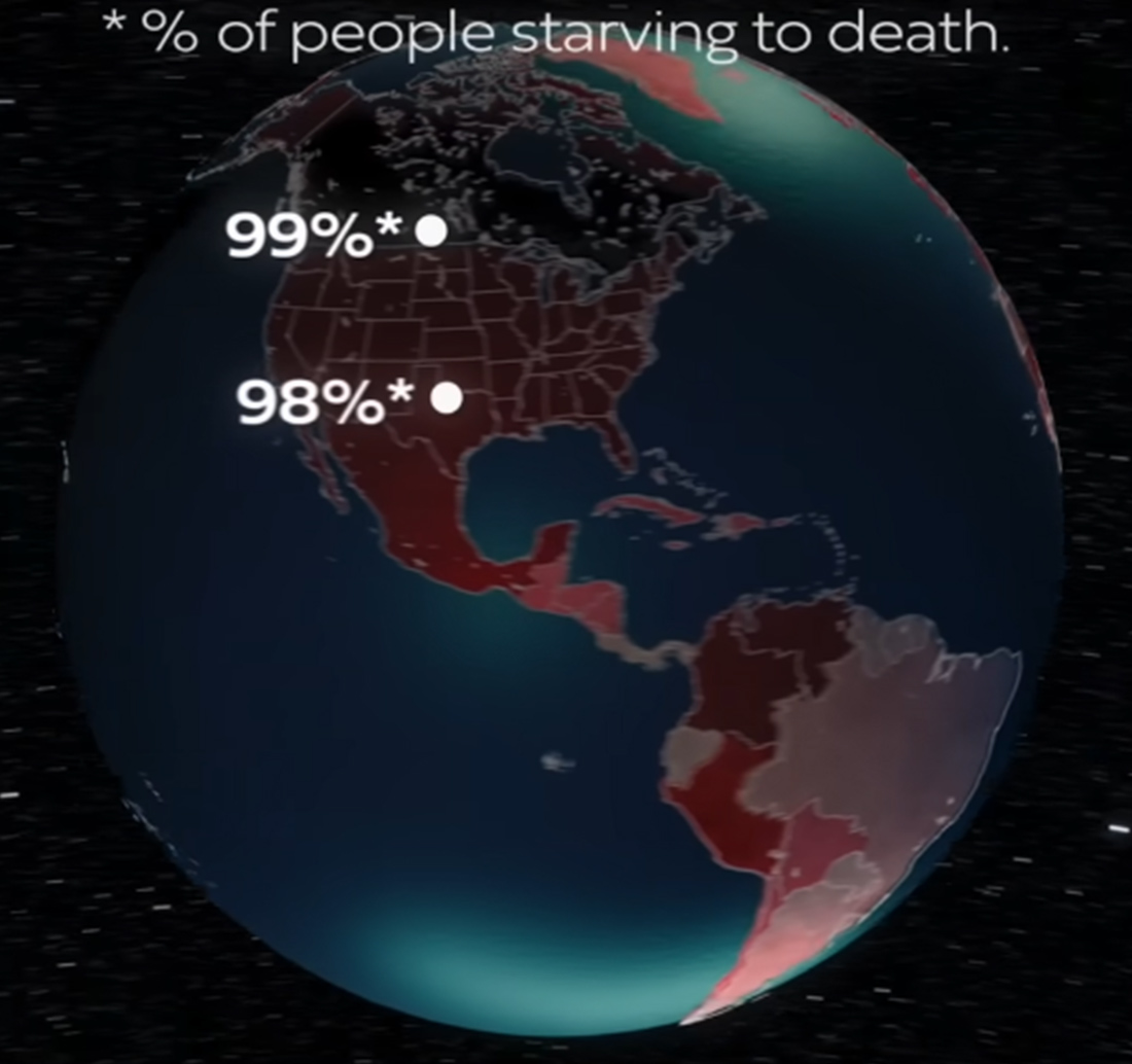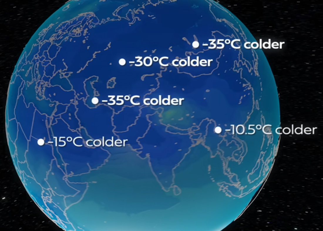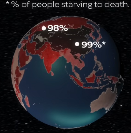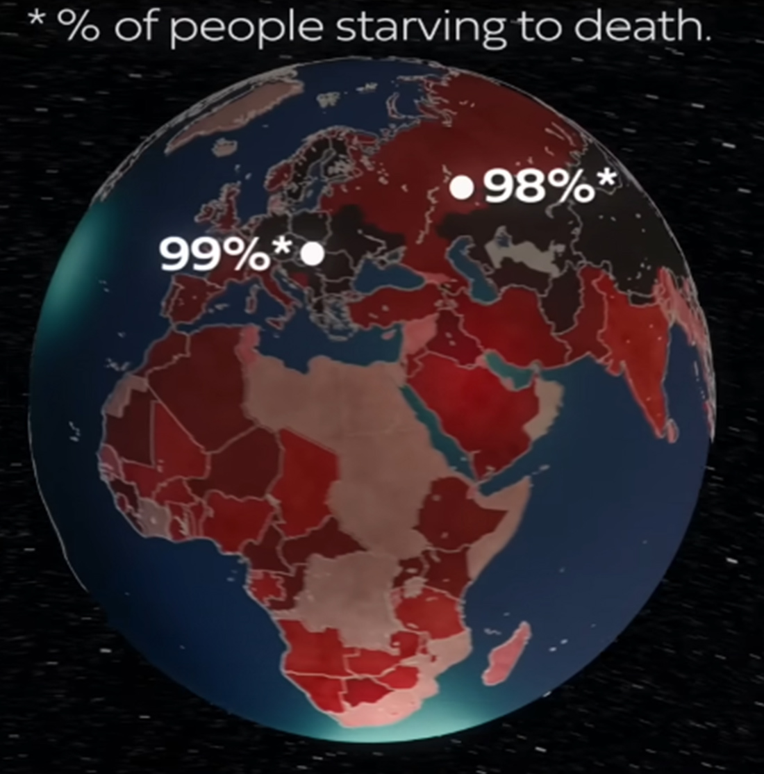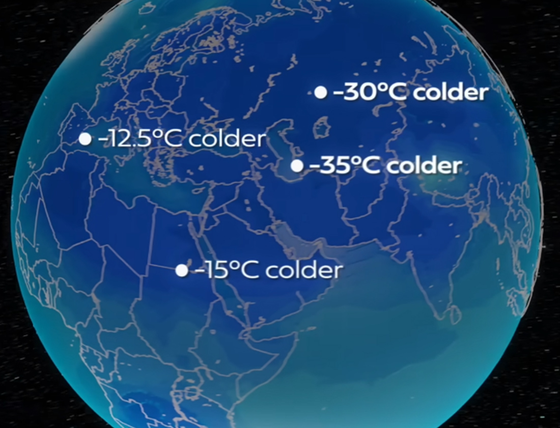 Αυτό θα οδηγήσει στο πάγωμα της Γης, στον πυρηνικό χειμώνα, που θα φέρει πτώση θερμοκρασιών έως και 35 βαθμών κελσίου σε κάποιες περιοχές. Η παραγωγή και οι καλλιέργειες θα καταστραφούν. Μια πρόσφατη επιστημονική εργασία εκτιμά πως πάνω από 5 δισεκατομμύρια άνθρωποι ενδεχομένως να πεθάνουν από την πείνα, συμπεριλαμβανομένου περίπου του 98% με 99% του πληθυσμού στις ΗΠΑ, την Ευρώπη, τη Ρωσία και την Κίνα. Ο λόγος είναι πως ο περισσότερος μαύρος καπνός άνθρακα παραμένει στο βόρειο ημισφαίριο, όπου παράγεται.