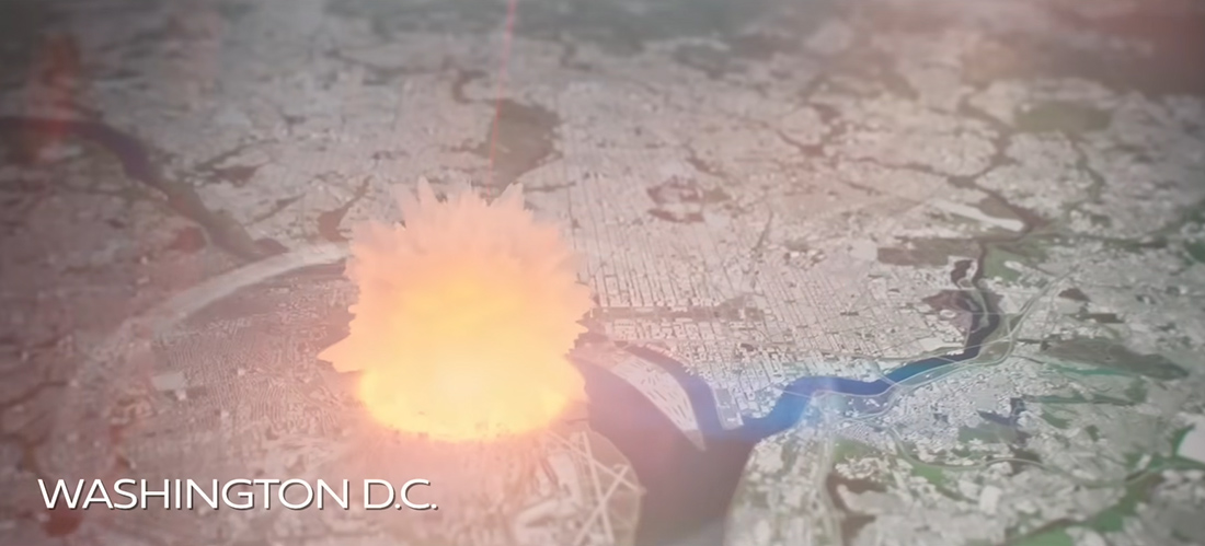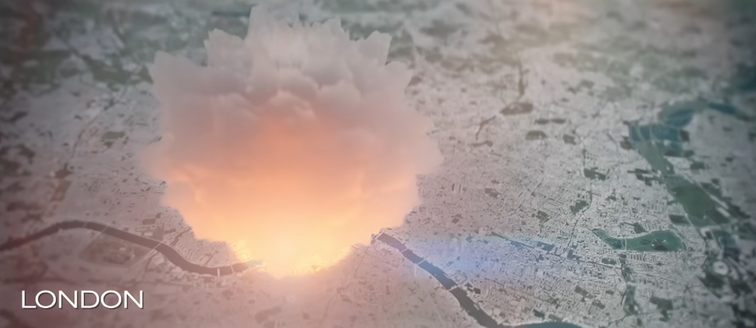 Οι μεγάλες πόλεις στοχοποιούνται τόσο επειδή περιέχουν στρατιωτικές εγκαταστάσεις όσο και για να εμποδίσουν τη μεταπολεμική ανάκαμψη του εχθρού. Κάθε πρόσκρουση δημιουργεί μια πυρηνική σφαίρα περίπου τόσο ζεστή όσο ο πυρήνας του ήλιου, ακολουθούμενη από ένα ραδιενεργό σύννεφο μανιταριού. Αυτές οι έντονες εκρήξεις εξαϋλώνουν τους ανθρώπους που βρίσκονται κοντά και προκαλούν πυρκαγιές και τύφλωση σε όσους βρίσκονται πιο μακριά. Η διαστολή της πυρηνικής σφαίρας προκαλεί στη συνέχεια ένα κύμα που καταστρέφει τα κτίρια, συνθλίβοντας τα κοντινά.