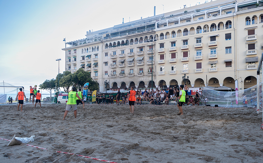 Την εβδομάδα που μας πέρασε, ένα αξιοπερίεργο γεγονός συνέβη στην πλατεία Αριστοτέλους της Θεσσαλονίκης. Για πρώτη φορά φέτος, η πλατεία γέμισε με άμμο, για να υποδεχτεί ένα ξεχωριστό τουρνουά ποδοσφαίρου. Μέχρι την Κυριακή, 20 ομάδες θα έχουν τη δυνατότητα να παίξουν 4×4 με θέα τον Θερμαϊκό, στην ειδικά διαμορφωμένη πλατεία με άμμο.