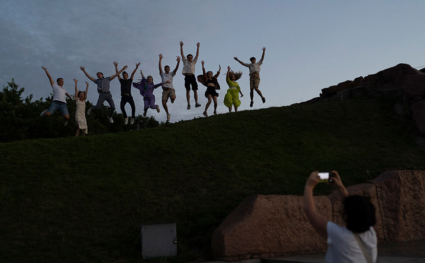 Μπορεί να ζουν υπό τον φόβο του πολέμου, όμως, τα παιδιά δεν σταματούν να οραματίζονται το μέλλον τους. Στη φωτογραφία, μαθητές γιορτάζουν την αποφοίτησή τους από λύκειο του Κίεβου και χαίρονται για το καλοκαίρι που έρχεται. Όσο δύσκολη και αν είναι η κατάσταση στην Ουκρανία, η εικόνα δείχνει πως, ακόμα και στις δύσκολες καταστάσεις, η ανεμελιά δίνει ελπίδα.
