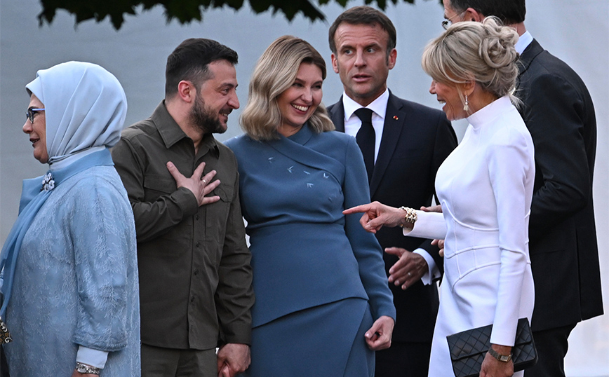 Η 45χρονη Ολένα Ζελένσκα και η 70χρονη Μπριζίτ Μακρόν, που συνόδευαν τους συζύγους τους στη Σύνοδο, έδειχναν ιδιαίτερα ευδιάθετες και είχαν πιάσει «κουβεντούλα» σαν δύο καλές φίλες. Η Ολένα έκλεψε τις εντυπώσεις με ένα εντυπωσιακό μπλε σύνολο, ενώ η Γαλλίδα Πρώτη Κυρία έδειχνε υπέροχη στα λευκά, μεταδίδει το δημοσίευμα.