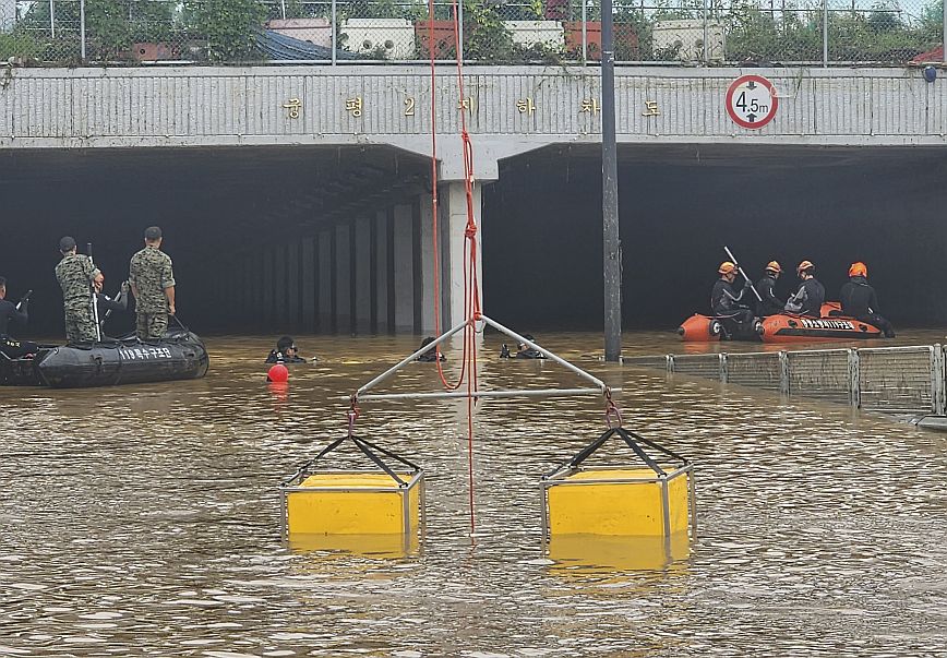 Ο Σέο Τζέονγκ-ιλ, επικεφαλής της πυροσβεστικής υπηρεσίας της δυτικής Τσεονγκτζού, είπε ότι περίπου 15 οχήματα, ανάμεσά τους και ένα λεωφορείο, εκτιμάται ότι έχουν βυθιστεί μέσα σε υπόγεια διάβαση της πόλης λίγο μετά την υπερχείλιση του φράγματος ενός γειτονικού ποταμού εξαιτίας των χθεσινών σφοδρών βροχοπτώσεων.