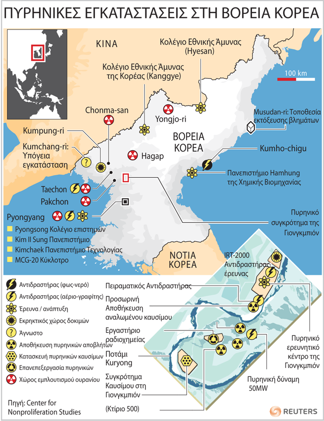 Διάσπαρτες σε ολόκληρη τη χώρα είναι οι πυρηνικές εγκαταστάσεις στη Βόρεια Κορέα, με τις λειτουργίες, αλλά και τη χρησιμότητά τους να ποικίλουν από σημείο σε σημείο.