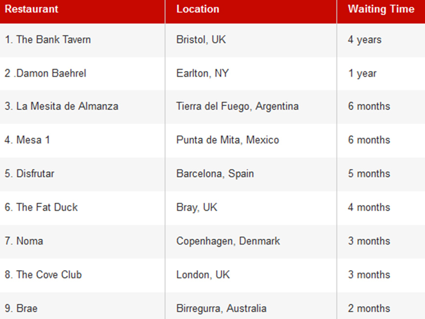 Το εστιατόριο κατατάσσεται ως το δεύτερο πιο αποκλειστικό στον κόσμο, με λίστα αναμονής περίπου ενός έτους.