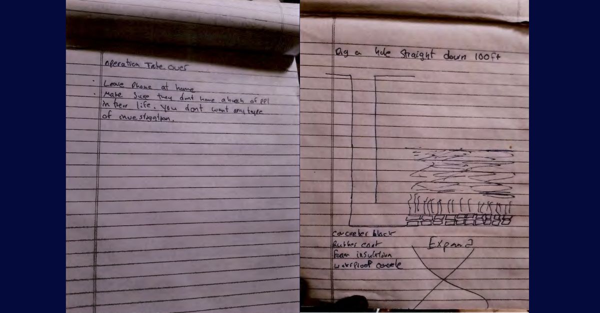 Οι αρχές εντόπισαν ένα σημειωματάριο στο οποίο φαίνεται να έγραφε τα φρικιαστικά σχέδιά του για τις απαγωγές. «Άσε το τηλέφωνο στο σπίτι. Βεβαιώσου ότι δεν υπάρχουν πολλοί άνθρωποι στη ζωή τους. Δεν πρέπει να ξεκινήσει οποιαδήποτε έρευνα». Σε μια άλλη σελίδα ανέφερε: «Σκάψε έναν λάκκο βάθους 30 μέτρων». Οι αστυνομικοί εκτιμούν πως αφορά τον τρόπο για να ξεφορτώνεται τα θύματά του.