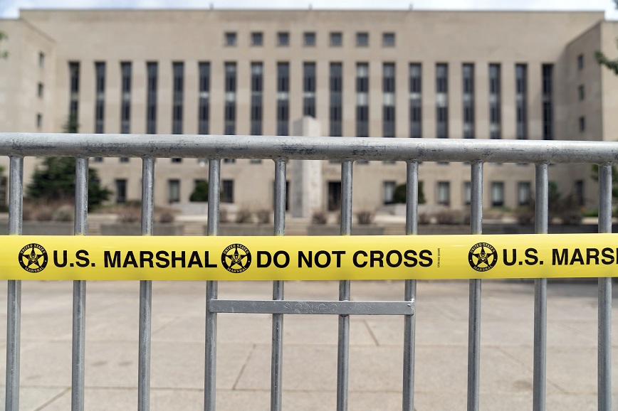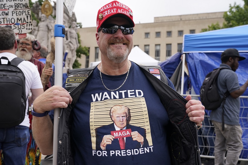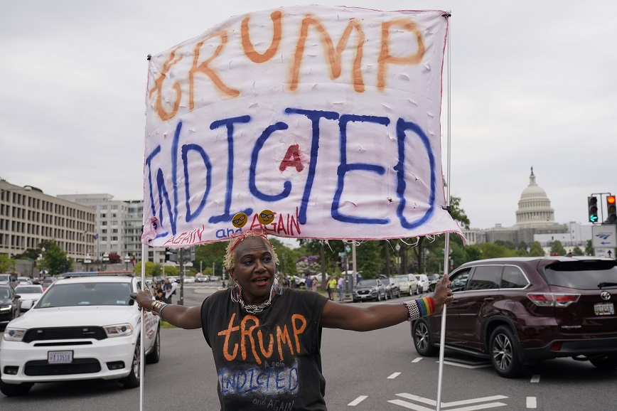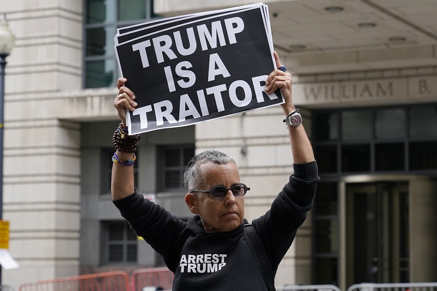 «Οι πρόεδροι δεν είναι βασιλιάδες» έγραφε το πλακάτ που κρατούσε ένας διαδηλωτής κοντά στο δικαστικό μέγαρο που βρίσκεται μόλις χιλιόμετρο μακριά από το Καπιτώλιο, στο οποίο υποστηρικτές του Τραμπ εισέβαλαν την 6η Ιανουαρίου 2021 επιχειρώντας να αποτρέψουν την επικύρωση της εκλογικής νίκης του Τζο Μπάιντεν.