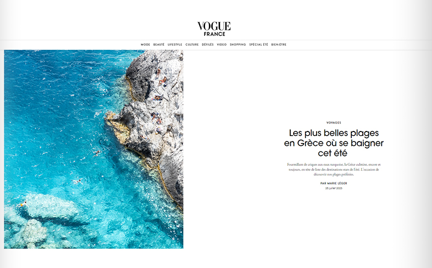Με αυτό το εισαγωγικό σημείωμα η γαλλική Vogue αναφέρεται στις παραλίες που θεωρεί τις καλύτερες της Ελλάδας. Ανάμεσά τους, έχουν παρουσία και οι Κυκλάδες με ξεχωριστή θέση, κατά σειρά, το Σαρακίνικο της Μήλου «ένα τοπίο με εκπληκτικές καμπύλες, το οποίο συχνά συγκρίνεται με αυτές του φεγγαριού», η Κόκκινη παραλία της Σαντορίνης «αυτό το ονειρεμένο σημείο που συνδυάζει ηφαιστειακά πετρώματα στο χρώμα της φωτιάς και μια πεντακάθαρη θάλασσα» και το Αλικό Νάξου «μια από τις άγριες παραλίες του που σας επιτρέπουν να κάνετε ηλιοθεραπεία με ηρεμία».