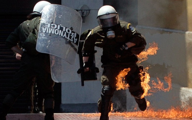 Κάηκε η Αθήνα και τρεις άνθρωποι σκοτώθηκαν κατά τη διάρκεια πορείας στο κέντρο της Αθήνας το Μάιο.