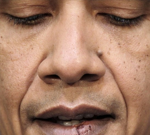 Τι τον ήθελε τον αγώνα μπάσκετ ο Ομπάμα; Ο φωτογραφικός φακός απαθανάτισε τον πλανητάρχη με τραύμα στο χείλος.