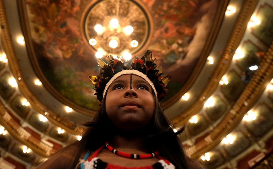 Η Maira Tembe στέκεται μέσα στο Teatro da Paz πριν από την έναρξη της τελετής για την παρουσίαση της εθνικής απογραφής των ιθαγενών της Βραζιλίας στο Belem της Βραζιλίας. Η Belem θα φιλοξενήσει τη Σύνοδο Κορυφής του Αμαζονίου, μια συνάντηση των εθνών που συμμετέχουν στη Συνθήκη Συνεργασίας για τον Αμαζόνιο: Βραζιλία, Βολιβία, Κολομβία, Γουιάνα, Εκουαδόρ, Περού, Σουρινάμ, Βενεζουέλα και Γαλλική Γουιάνα.