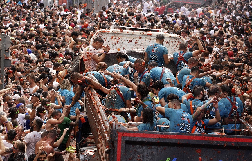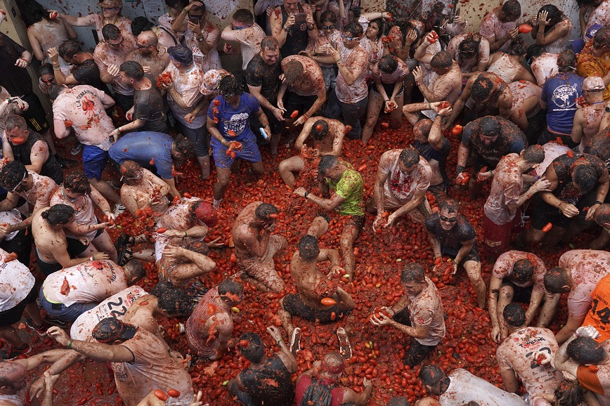 Η διοργάνωση «Tomatina» πραγματοποιήθηκε για ακόμη μία φορά στην πόλη Μπουνόλ και προσέφερε εκπληκτικές εικόνες, καθώς αποτελεί τον ετήσιο ντοματοπόλεμο που διεξάγεται στην Ισπανία.